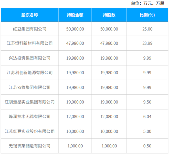 锡商银行2024年度报告披露,截至2024年末,锡商银行主要股东包括:红豆集团(持股比例25%),江苏恒科新材料有限公司(持股比例23.99%),兴达投资集团有限公司、江苏利创新能源有限公司、江苏双象经济体有限公司持股比例均为9.99%。