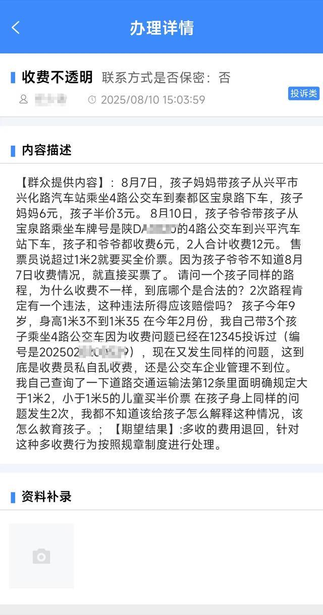 “兴平—咸阳4路车,同一儿童乘坐‘免票、半票、全票’会有不同?”交运部门:车辆两地运营,管理标准不一