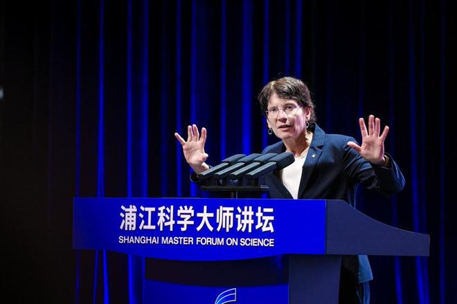 卡罗琳·贝尔托齐在“浦江科学大师讲坛”上介绍藏在癌细胞“糖衣”中的伪装机制和药物策略。图片由主办方提供