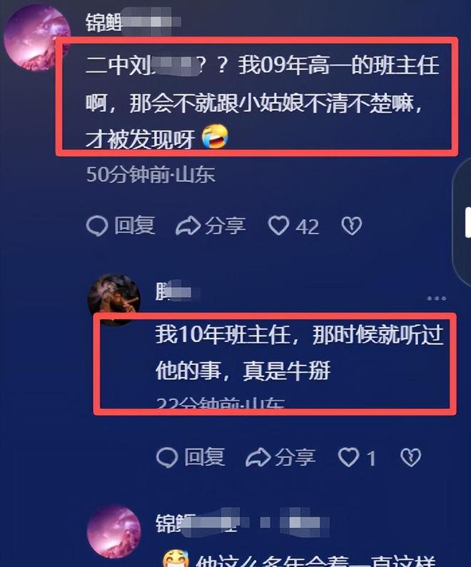 随着讨论的深入,越来越多网友开始追问:刘某某的行为是初犯,还是早有先例?这一问题很快得到了知情人的回应。多位自称曾是刘某某学生的网友陆续在评论区留言,透露其在教学过程中长期存在边界感模糊的行为。有网友回忆,上学时刘某某就经常在课堂上拿女学生开不当玩笑,内容涉及女生外貌、女生言行等私人领域,当时同学们虽觉不适,但碍于师生身份不敢反驳;另有两位匿名爆料者提到,早年间校园里就流传着刘某某与女学生关系暧昧的说法,甚至给女学生开黄腔,只是当时缺乏实质证据,且涉事学生因害怕影响学业选择沉默,导致传闻未能引起足够重视。这些爆料并非空穴来风,有其他同期学生在评论区跟帖佐证,称“当时确实听班里同学说过类似的事,只是大家都觉得是‘小道消息’,没当回事”。