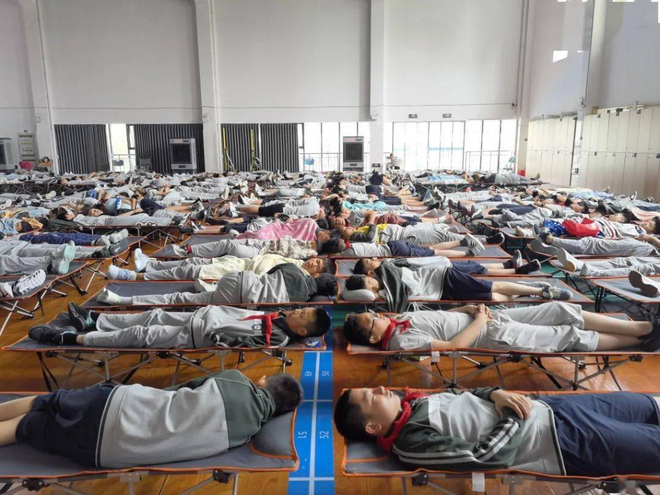 浙江省舟山市第一初级中学学生在体育馆“躺睡”,图源自舟山发布