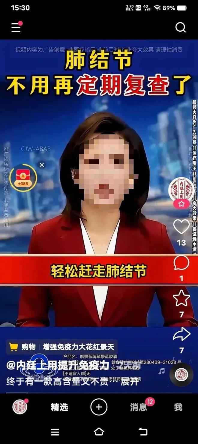 经查,上海人食间数字科技有限公司(以下简称当事人)在电商平台开设店铺,对外销售斛景蓝胶囊保健食品。当事人采用AI虚拟数字人技术生成老专家、主持人等形象以及利用真人演员假扮厂家老板等手段,打造“虚假人设”制作5条直播短视频切片广告,采用竞价方式精准投放给平台内中老年群体。广告内容含有“我要是杀不死你的肺结节你退回来”、“消灭不了你肺里五年的疙疙瘩瘩我给你承担”、“消灭不了你三年的咳嗽咳痰,连带的胸闷气短气急气喘你退回来”、“一次吃一粒可以让肺部通畅50%”,“一次吃两粒可以让肺部通畅80%,可以治疗顽固肺结节、咳痰喘、头晕头痛、胸闷心慌,还能疏通淤堵的肺气管”,宣称具有治疗肺结节,哮喘的功效。该保健食品的保健功能为增强免疫力、提高缺氧耐受力,并无可治疗肺结节、哮喘等功效。当事人发布的上述视频广告内容虚假,构成虚假广告。