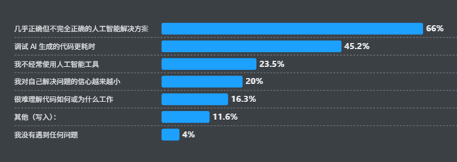 一般来说,专业程序员会为agent准备好context,帮助AI理解任务。但目前市面上的Vibe Coding工具依然会脑补过多,主动添加没必要的备用方案,不仅让代码量指数级膨胀,而且随着对话轮次增加,低质量信息、错误输出不断积累,出现上下文腐烂,输出效果越来越糟糕。在复杂项目中,上下文腐烂带来的修正难度和维护成本更高。一项调查显示,有45%的开发人员在调试AI生成的代码时感到挫败。