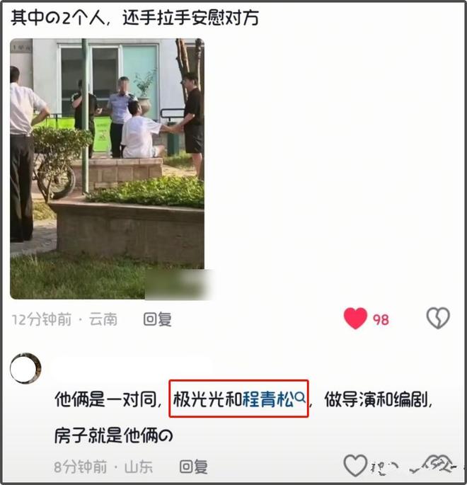 于朦胧坠楼身故的消息尚未完全平复,因官方与工作室披露的信息有限,网友从网传现场照片中扒出疑似一同喝酒友人的举动,让事件再度卷入争议漩涡——导演程青松连夜发文澄清并报警,编剧极光光则删博关评沉默应对,两种截然不同的回应,叠加网友对坠楼细节的猜测,使得整个事件的讨论热度居高不下。
