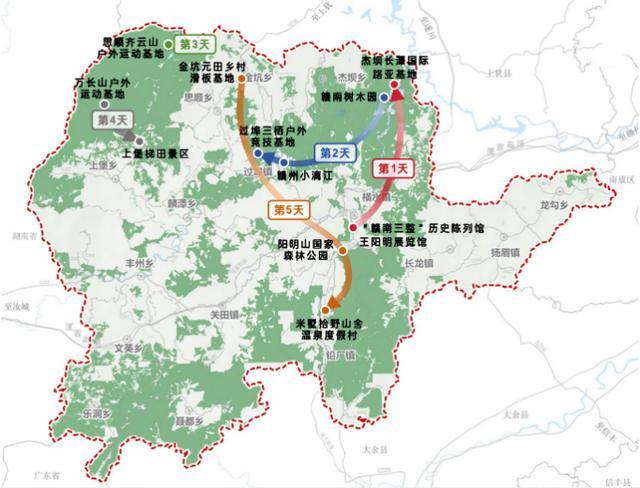 江西省赣州市崇义县户外运动线路示意图