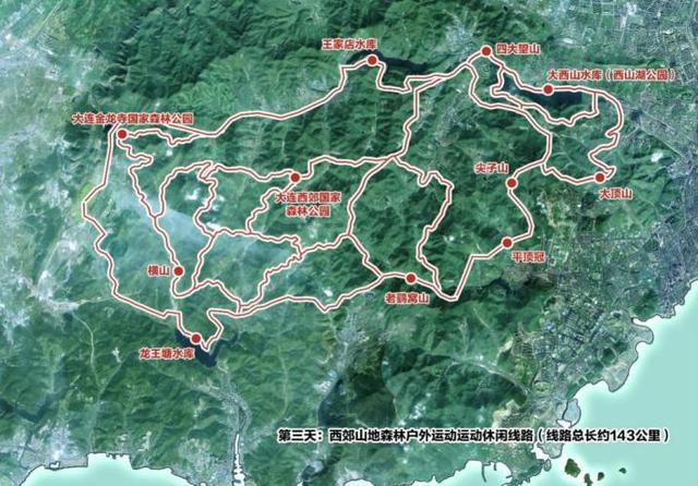 辽宁省大连市南部山海户外运动线路示意图