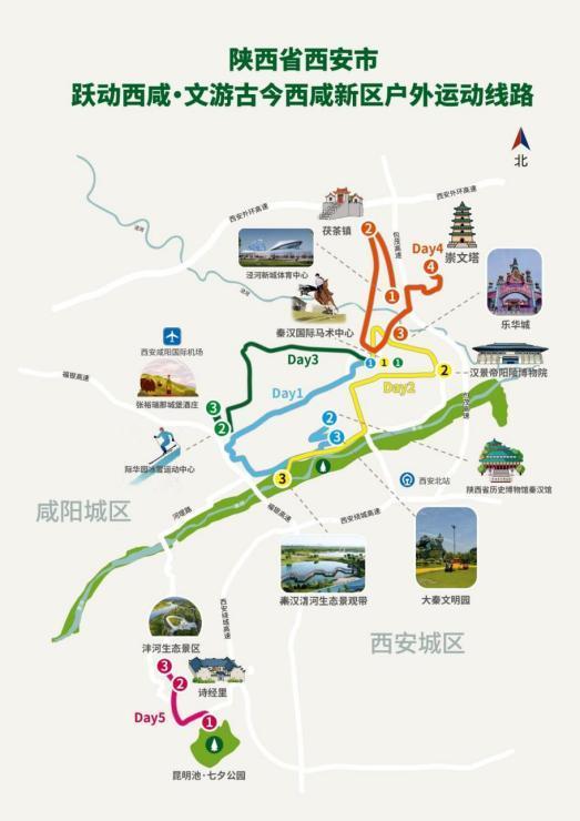 陕西省西安市"跃动西咸·文游古今"西咸新区户外运动线路示意图