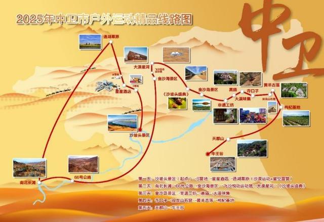 宁夏中卫市星星故乡·动感大漠户外运动线路示意图
