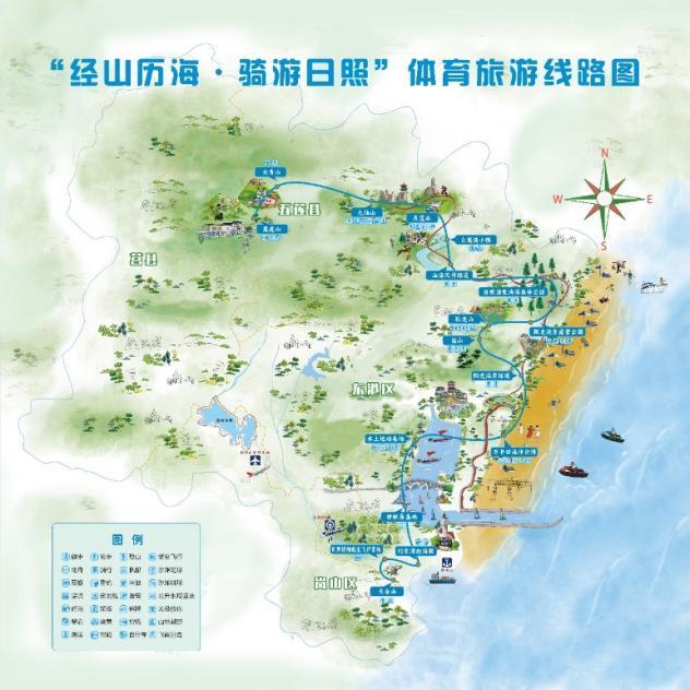 山东省日照市“经山历海·骑游日照”户外运动线路示意图
