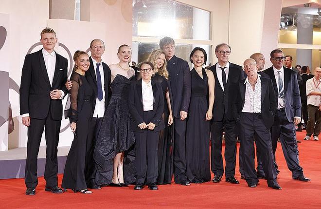 伊尔蒂科·茵叶蒂(左五)与主创出席《寂静的朋友》威尼斯电影节全球首映礼。