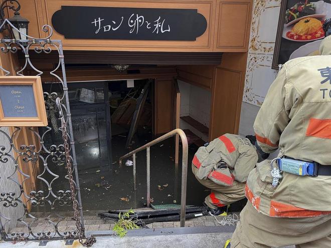 9月11日,日本东京目黑区,一家因暴雨被淹的半地下餐厅。
