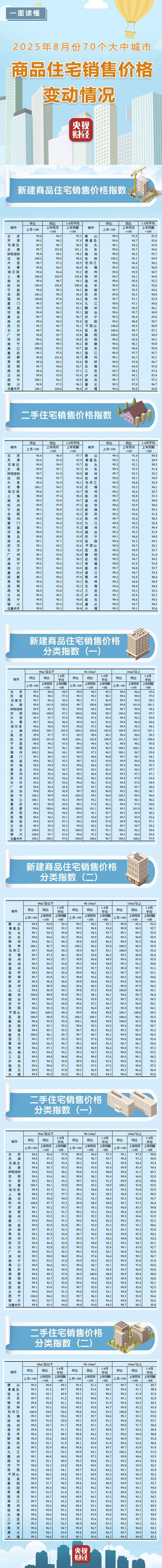 9月15日,国家统计局发布2025年8月份70个大中城市商品住宅销售价格变动情况。