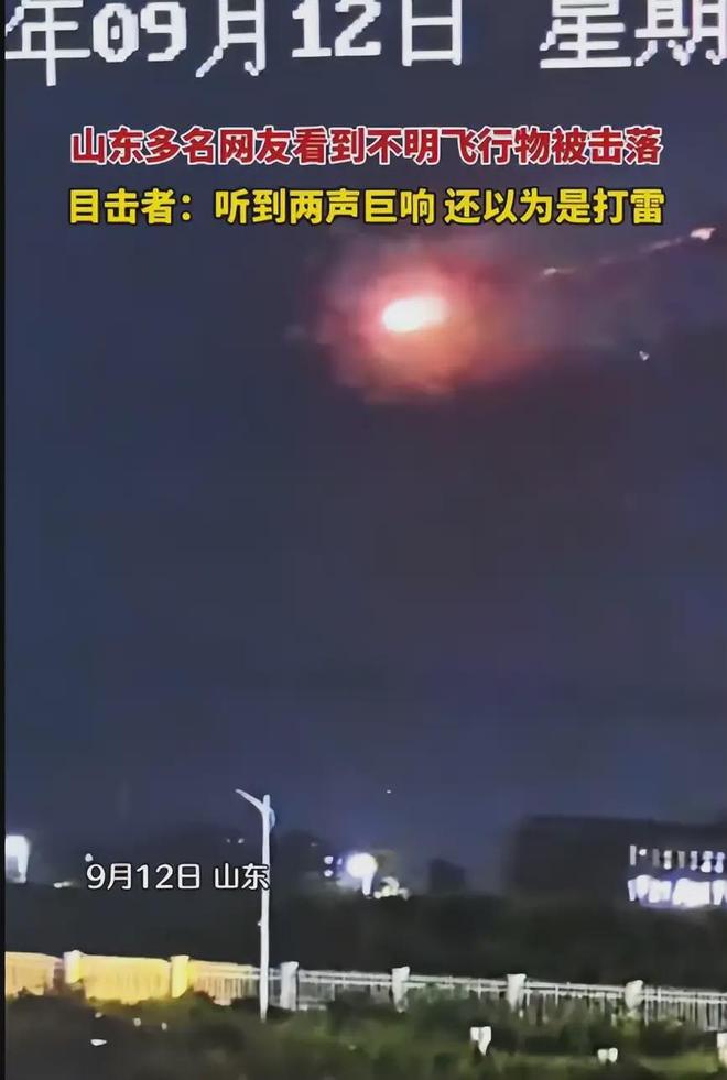 山东突现不明飞行物,9月12日晚间被击落,被击落画面曝出