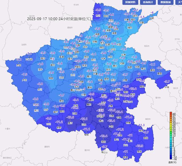 受冷空气和降水叠加影响影响,今天全省大部气温明显下滑,上午10时全省大部气温仅有20度上下,对比昨天同一时间,东南部部分地区降温超10度。