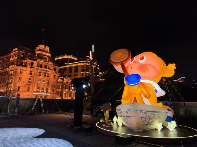 两只气模分别高达6米和9米,作为热门IP和上海国际光影节·黄浦的联动产物,它们聚焦关爱“来自星星的孩子”的理念,传递城市温度。