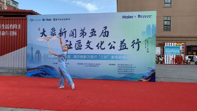 绵绵秋雨后,蓝天白云!9月20日,大象新闻第五届社区文化公益行走进郑州市二七区马寨镇杨寨社区,暨海尔换新万里行,“三好”家电更省心活动在社区中心广场举行。郑州市红舞裙艺术中心的小演员们携古典舞、拉丁舞、语言等节目轮番上演,现场很快被吸引来的观众层层围拢。