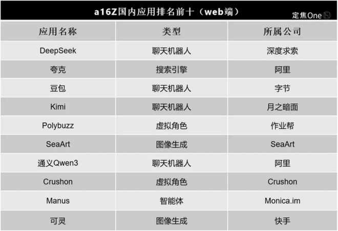 为了进一步验证这一趋势,我们还选取了硅谷著名VC机构a16z发布的全球Top100AI应用榜单进行对比。