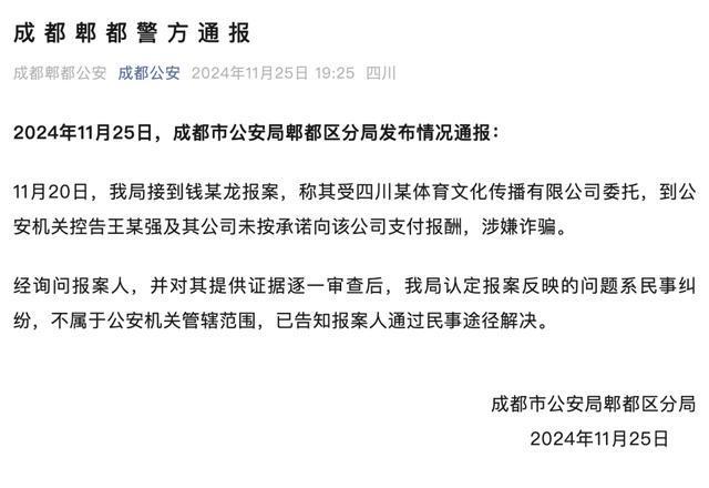 据此前媒体报道,2024年11月,恩波格斗俱乐部曾举报王宝强及其公司涉嫌诈骗,双方曾合作拍摄《八角笼中》,但在票房分成上存在争议。