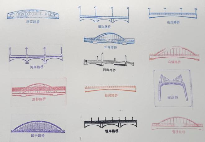在记者集到的13枚苏州河桥梁的印章中清晰可见,每一座桥都以各自独特的姿态,构成苏州河上一道亮丽的风景线。