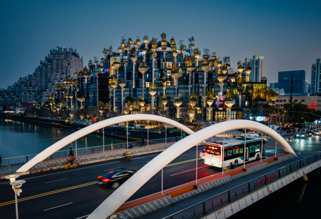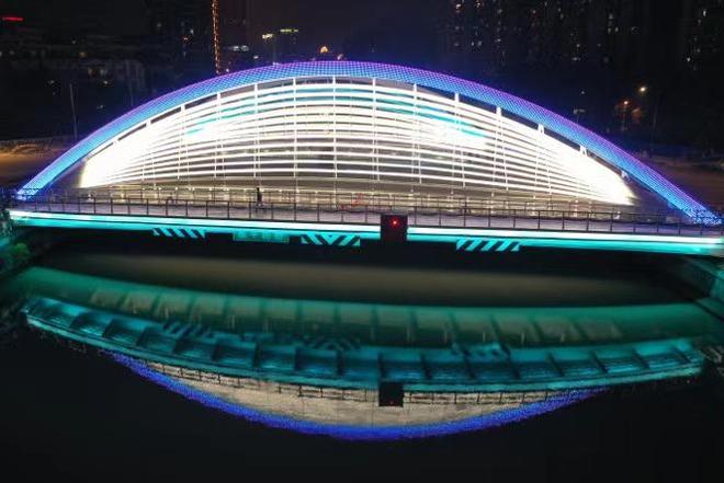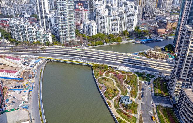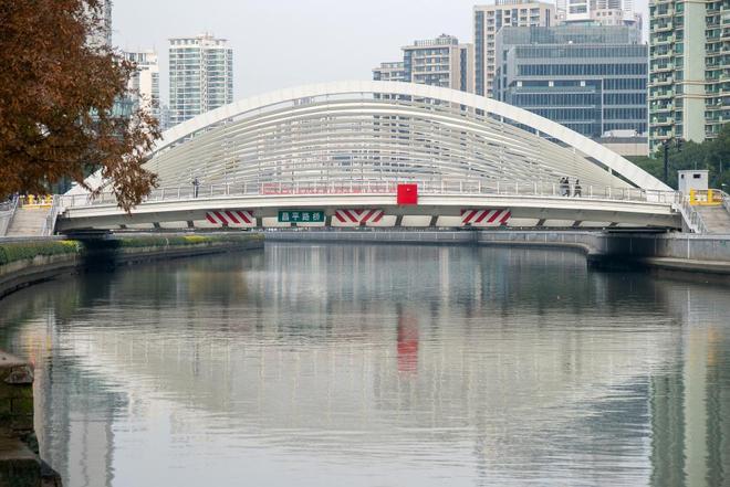 2020年12月6日,有“苏河之眼”称号的昌平路桥正式通车,桥上的拱轴线与大跨度的悬臂共同形成“明眸”造型。