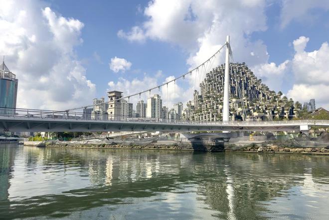 蜿蜒的苏州河上又多了一座桥——百合桥,它串联起普陀与静安两区,于今日正式开放。这是苏州河上第一座悬索人行桥。