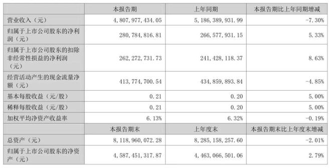 8月7日晚,红旗连锁(002697.SZ)公布2025年半年报。2025年上半年,公司实现营业收入为48.08亿元;实现归母净利润2.81亿元,同比上升5.33%;扣非归母净利润为2.62亿元,同比上升8.63%;每股收益(全面摊薄)为0.2065元。