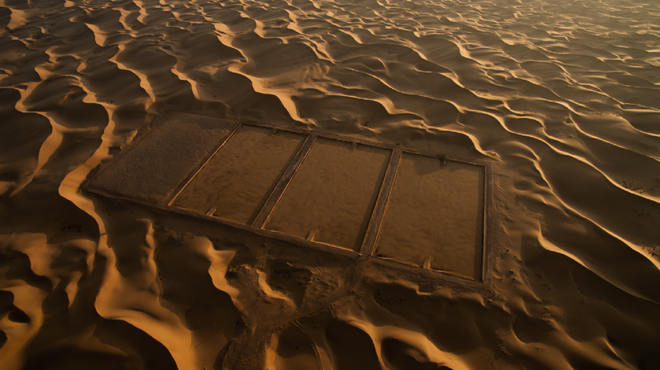 2015年11月,腾格⾥沙漠腹地的巨型排污池,经过国务院督查治理达到要求,污染物经过防渗透处理被永久封存。