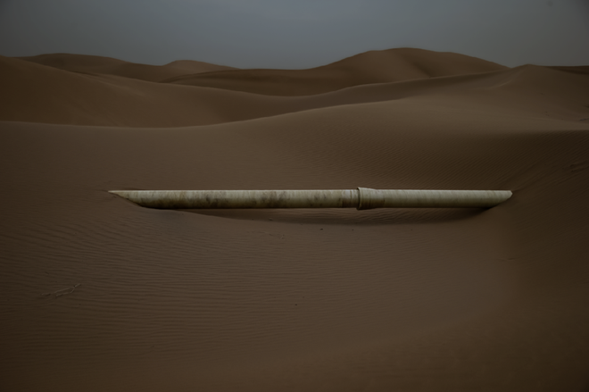 2014年8月,内蒙古腾格里沙漠腹地的排污管道。