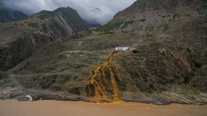 2015年3月,金沙江四川金阳县境内的铁矿出现直接排污现状。