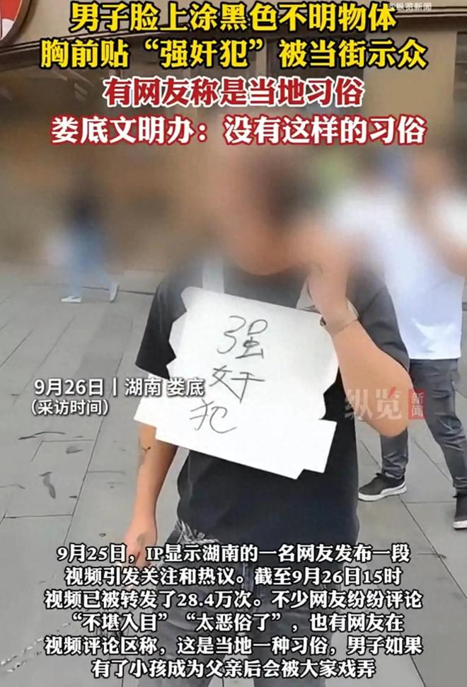 娄底一男子胸前被贴强奸犯游街示众,网友知情后怒斥,当地回应