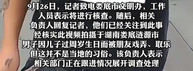 这段视频刚流出时,有网友猜测这是当地某种特殊习俗,甚至有人留言称“有了小孩当了父亲,会被大家戏弄,是一种庆祝方式”。但随着讨论范围扩大,更多当地网友站出来否认,称从未见过这样的“习俗”。随后,有媒体联系当地相关部门核实情况,得到的回应也明确推翻了“习俗”的说法——视频中的男子,其实是因为家里儿子过周岁生日,被朋友以“戏弄取乐”的方式庆祝,并非涉及任何违法犯罪行为。当地部门负责人在回应中还特别强调,“这不是什么好的文明习气,传递的也不是正确的价值观,肯定是要抵制的”,同时透露,相关部门已经针对此事展开跟进,正在进行进一步的调查处理。