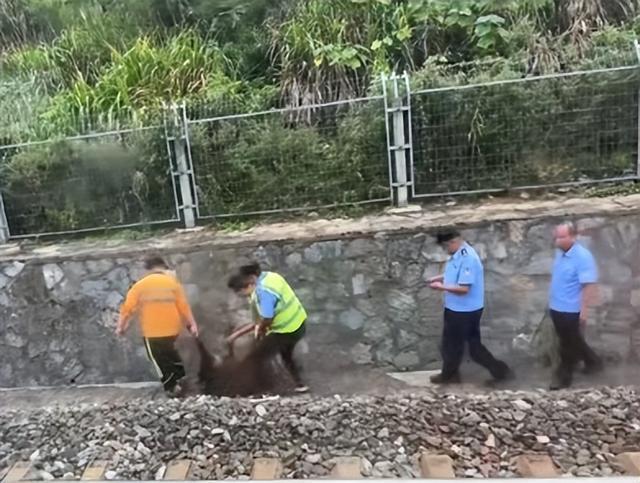 网友发视频列车疑撞野猪临停,3名工作人员一起抬死猪;相关方回应:尚不清楚具体情况
