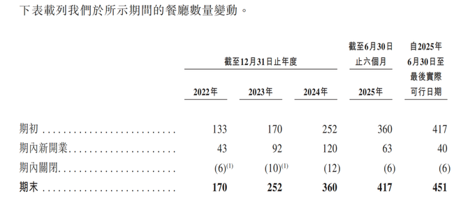 自2022年至最后实际可行日期,遇见小面的餐厅数量已由133家增长至451家,包括中国内地22个城市的440家餐厅及香港特别行政区的11家餐厅。其中有101家新餐厅在积极筹备中,有望年内突破500家门店规模。据悉,其新加坡首店正在筹备中,预计第一家海外门店将于今年12月正式开业。