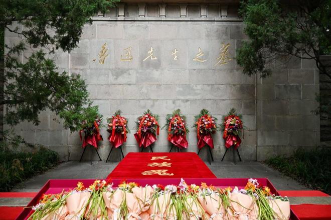 2025年的今天,公众祭扫活动在上海虹口区鲁迅公园举行,鲜红的“民族魂”旗帜高擎,来自社会各界的300 余名代表敬献鲜花,表达对鲁迅先生的崇敬与怀念。