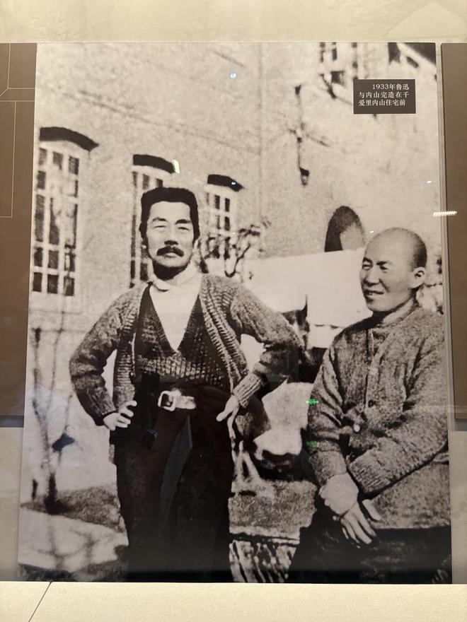 “内山完造与中日友好”主题展览中,鲁迅与内山完造的照片。澎湃新闻记者 陈悦 图