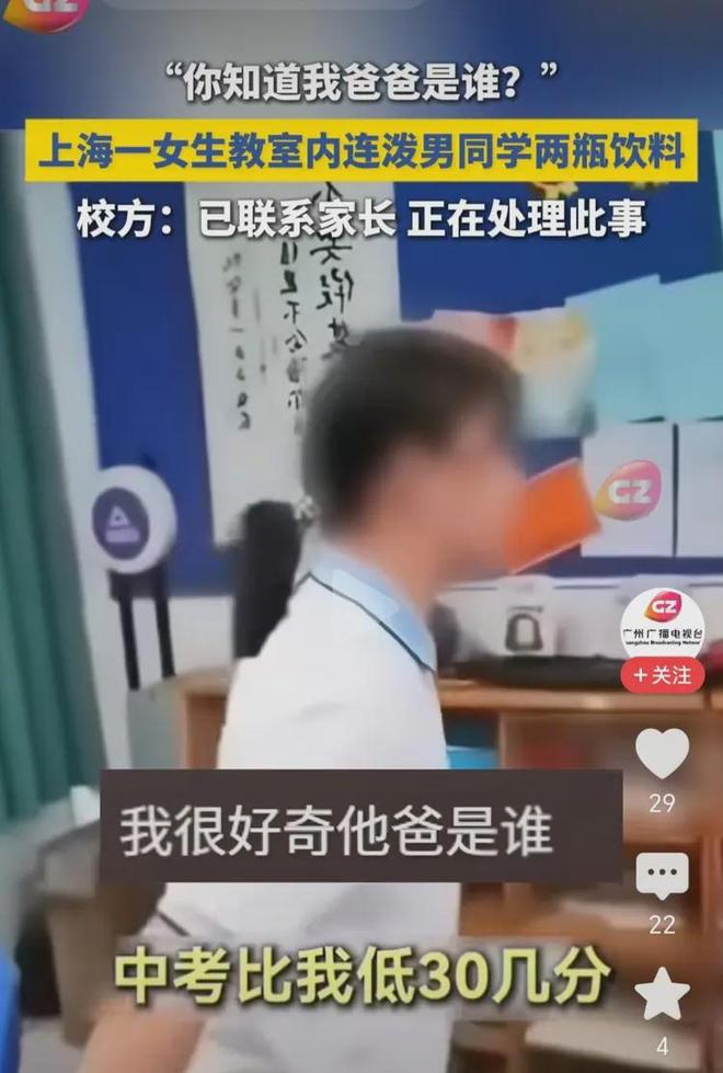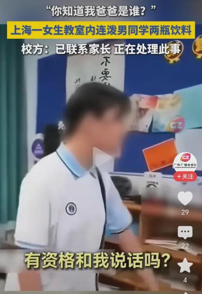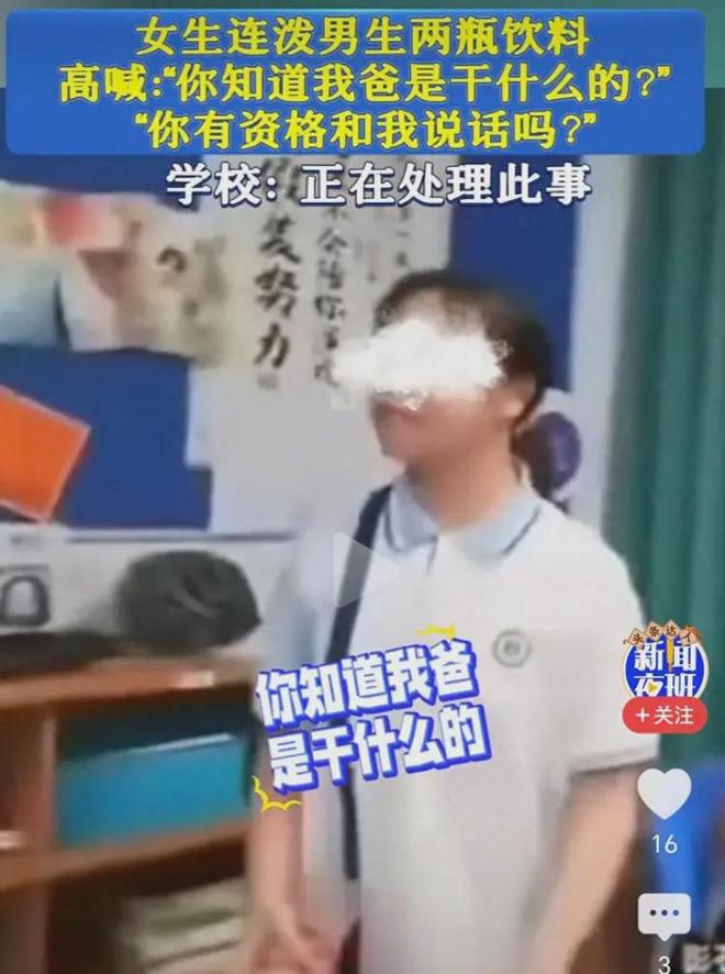 一段发生在校园里的视频,最近在网络上引发了不少讨论。视频里,一名女学生对着男同学泼饮料,还大声质问“你知道我爸是干什么的吗”,而男同学忍无可忍后的反击、周围同学的反应,以及学校后续的通报,每一个细节都让这场看似普通的学生冲突,变得不再简单。