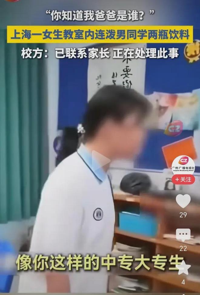 女生连泼男生两瓶饮料,质问:你知道我爸是干啥的?其父身份曝出
