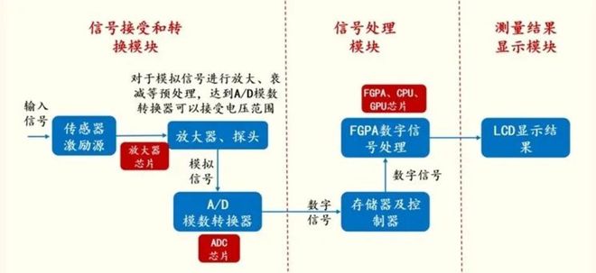 在上述信号链路上,每一个环节都至关重要,而前端放大器芯片和ADC芯片是决定带宽和采样率的关键瓶颈。具体表现为,带宽越高,对放大器在极高频率下的增益平坦度、噪声性能要求越苛刻;采样率越高,则要求ADC芯片能够在极短的时间内完成一次精确的电压转换;至于FPGA/ASIC,则需要足够的处理能力来实时处理ADC输出的海量数据。