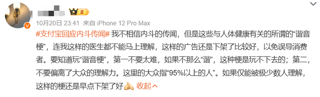 本次暂停投放是基于用户体验这条底线,与“世子之争”的传言毫无关系,支付宝既不感兴趣更不想卷入,因为“我”不需要。支付宝依然鼓励AQ持续探索健康科普的创新形式,让专业知识以更易接受的方式触达大众。