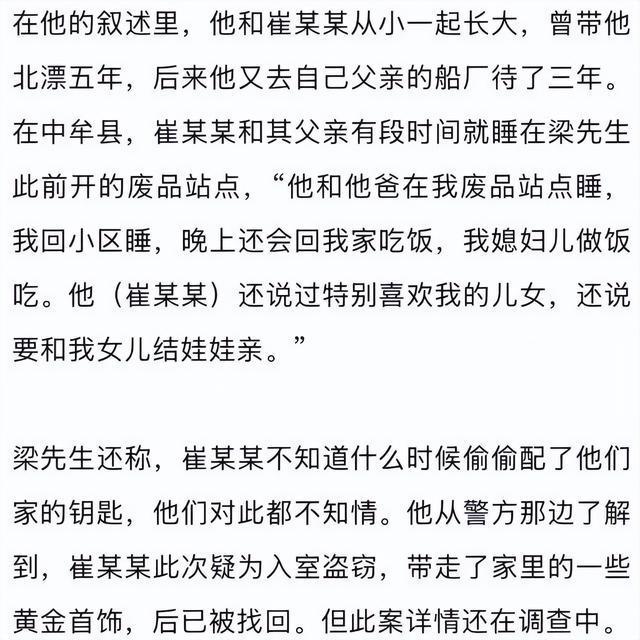 警方调查后,锁定嫌疑人为梁先生发小崔某某。