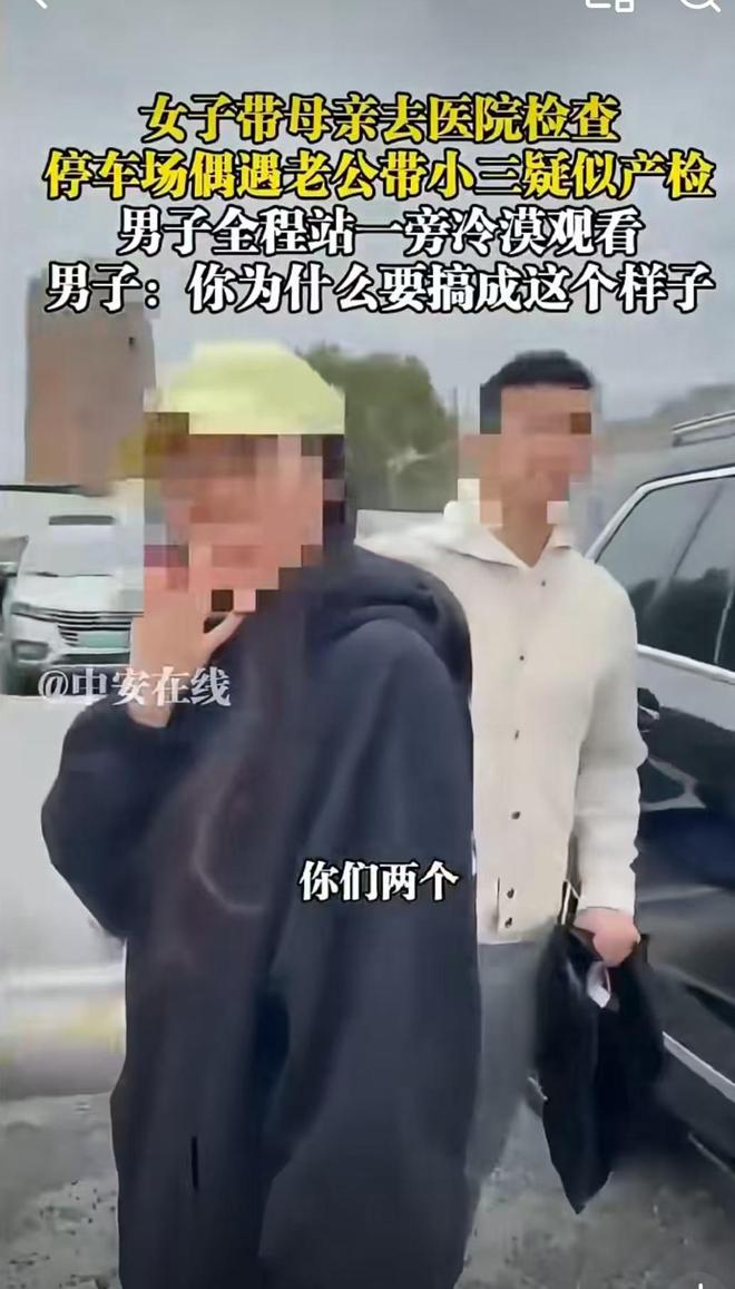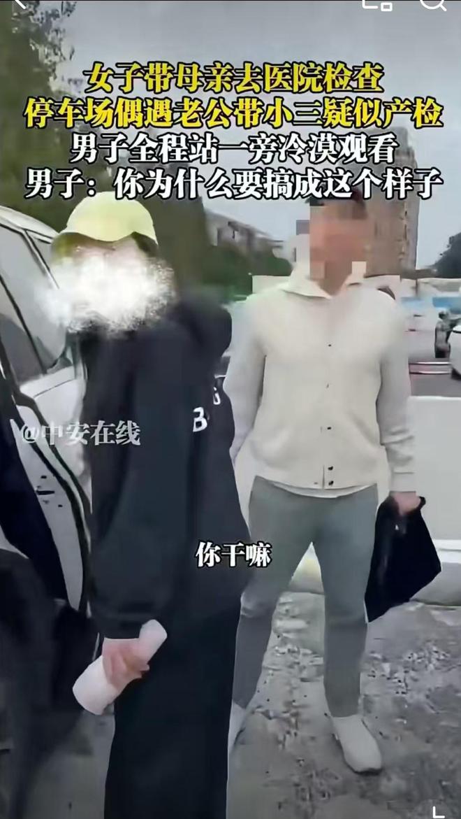冲突现场并未出现激烈的肢体对抗,但男方的态度却成为了争议的核心。面对妻子的质问,他全程面无表情,没有丝毫愧疚,反而试图用帽子遮挡面部,回避镜头。当妻子追问“她是不是怀孕了”时,他直言不讳地回应“怀上了,怎么了”,语气中满是无所谓。而当妻子带着委屈与不甘追问“她哪里比我好”时,男方一句“她哪哪都比你好”,更是让这场家庭冲突的刺痛感拉满,也让围观者感受到了原配的无助与心寒。值得注意的是,妻子全程保持冷静,一边拍摄视频留存证据,一边抢走了男方手中疑似装着产检报告的黑色袋子,全程未与对方发生肢体冲突,其律师职业素养在这场突发危机中显露无遗。