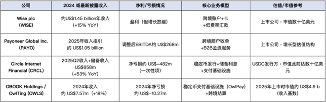 二级市场看,如果把跨境支付和稳定币的几家公司放在一条时间线上,Wise、Payoneer、Circle和OwlTing其实代表着不同的进化阶段。前两家是传统的效率革命,把跨境转账这件事做得更快、更便宜;Circle是货币层的创新,用稳定币重写“美元的形态”;而OwlTing想干的,是更底层的“清算革命”,让稳定币真的能进入企业财务系统,跑进发薪、结算和供应链资金流里。