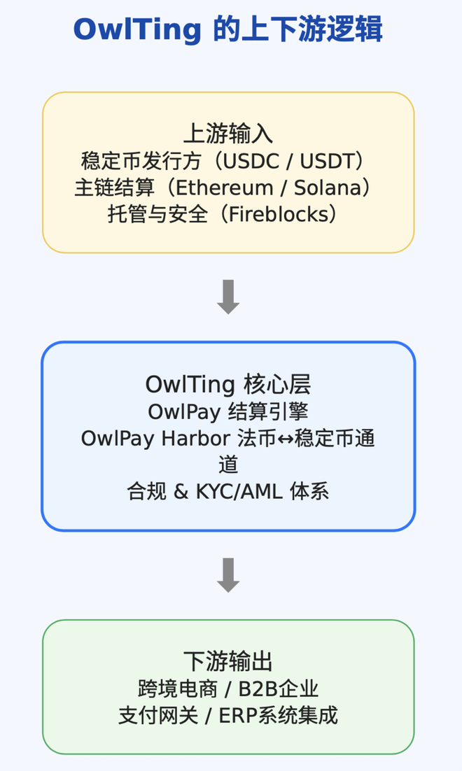 OwlTing属于偏中下游那层,距离法币会更近,属于连接“链上的钱”(USDC/USDT)与“银行系统的钱”(USD/TWD/EUR)。