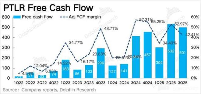 这其实是非常难得的地方,Palantir 的模式决定了,业务扩张需要人员团队同步扩张,但实际不涨反缩。甚至从指引来看,Q4 经营利润率隐含还将继续环比提升 2%,由此可见 Palantir 极致的经营效率。