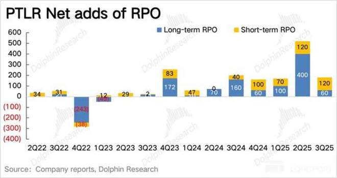 三季度 Palantir 剩余合同额 26 亿美元,环比仅净增加了 1.8 亿,明显弱于上季度。