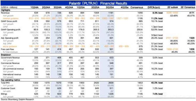 $Palantir Tech(PLTR.US) 于美东时间 11 月 3 日盘后发布了 2025 年三季度的业绩。