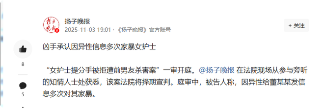 一场原本应是青春正好、事业稳步的人生,却因一段充满控制与暴力的情感,永远定格在了2024年的夏日。2025年11月3日,西安中级人民法院开庭审理的“女护士(董文卉)被前男友(师佳豪)杀害案”,让这段隐藏着长期家暴与极端占有欲的关系浮出水面,庭审现场的争议与背后的细节,引发了全网对情感暴力与女性安全的深度思考。