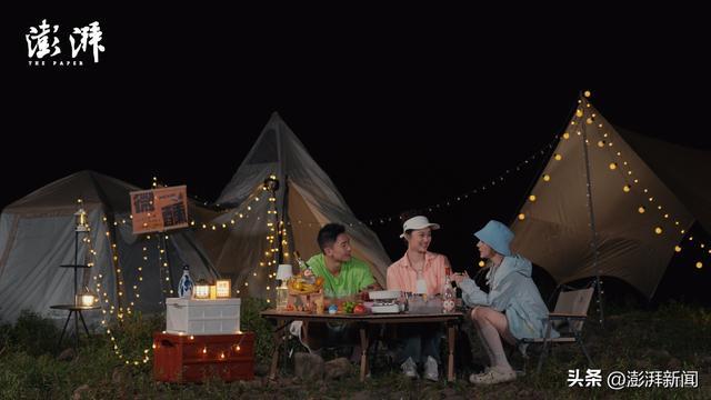 这是当下年轻人们十分熟悉的场景,也是他们逃离压力、告别工作与生活拥抱的方式。夜晚来临,三人围坐在一起,白天的疲累转化成慵懒,陌生感也逐渐减少,此时的晴果神神秘秘地从包里掏出来了一个摇酒壶,拿着汾酒、话梅、茶饮、水果等食材,开始给露营的伙伴们调起了鸡尾酒。