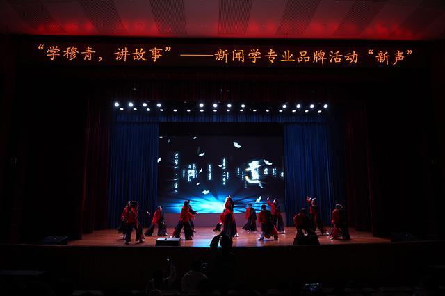 开场舞《东方》鼓点激昂,学子身姿舒展,尽显新闻人蓬勃朝气。情景讲述《勿忘人民历史的回望》带观众沉浸于穆青的新闻人生——抗日报国、扎根基层、心系人民,“勿忘人民”的信念在学子心中扎根。《在田间地头找答案》中,学生洪海阳以方言还原采访场景,真实质朴;仙人庄办事处何楼社区书记魏东生登台,用“脚下沾泥,心中有民”的基层实践寄语青年,诠释新闻作品的温度来源。