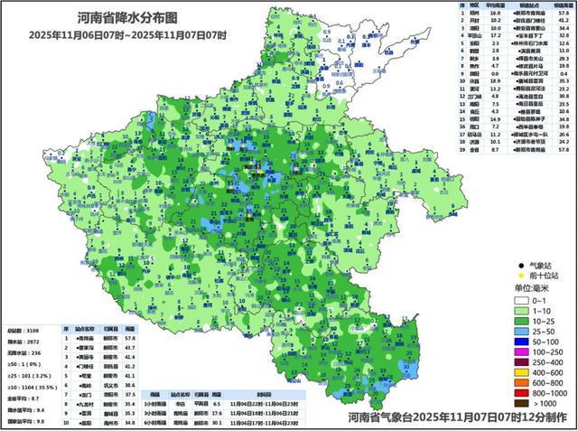 昨天随着低槽东移影响我省,全省大部出现小到中雨,中部、南部等地有大雨。
